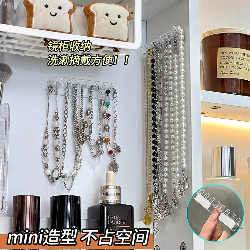 镜柜门后项链收纳挂架手链耳环联排挂钩防缠绕壁挂式首饰展示架