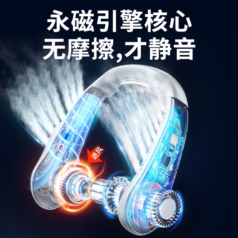 usb挂脖小风扇超长续航随身制冷学生上课静音散热2025新款便携式空气循环小型办公室宿舍led充电工位夏天无声