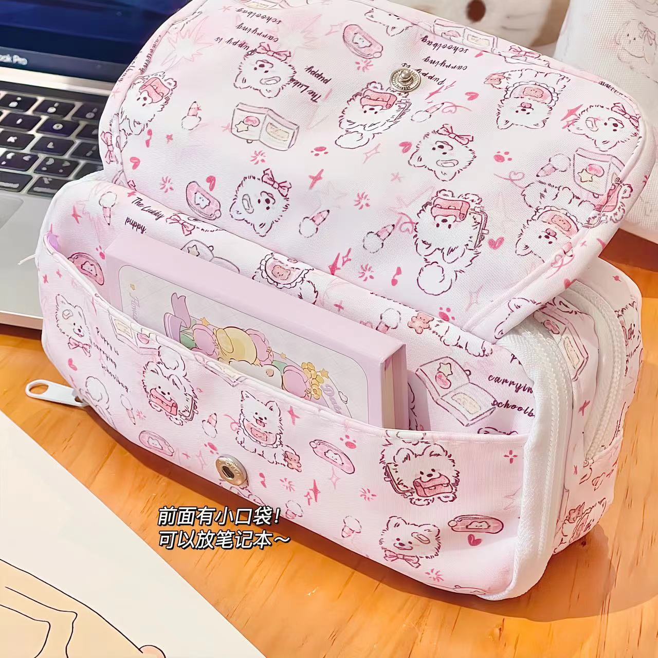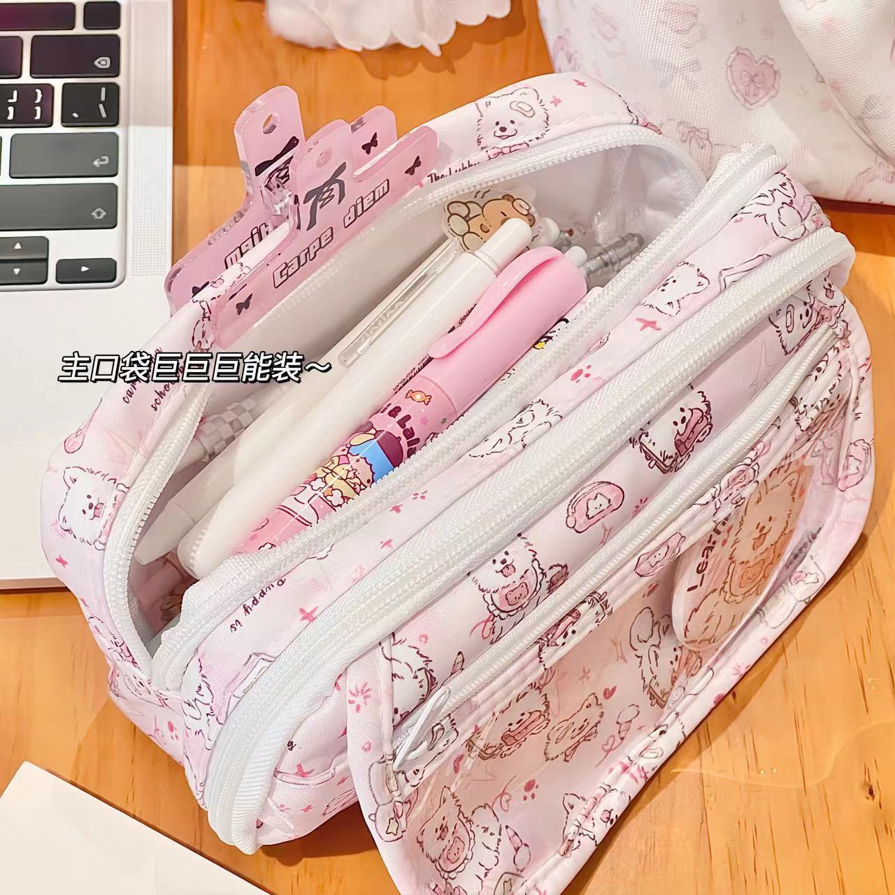 卡通学习小狗笔袋ins透明痛包萨摩耶大容量多层款可爱文具收纳袋