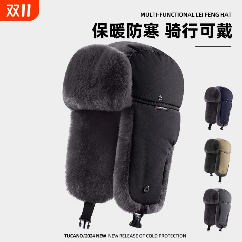 帽子男骑行雷锋帽冬季防寒全包棉帽行东北大头围护耳保暖加绒加厚
