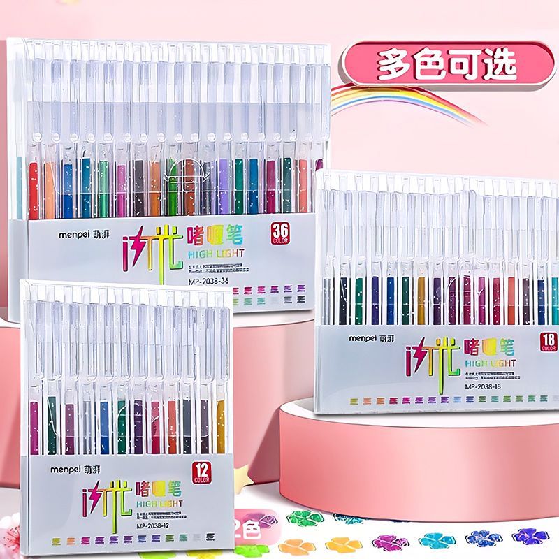 彩色闪光笔啫喱发光亮晶晶流沙银光变色做手账的手帐专用珠光标记儿童莹光做笔记闪亮金属轮廓闪粉水彩笔荧光