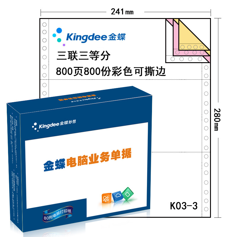 金蝶800页一联两联三联四联五联一等分二等分三等分电脑无碳复写打印纸K01-2 K02-2 K02-4 K02-5针式业务单据