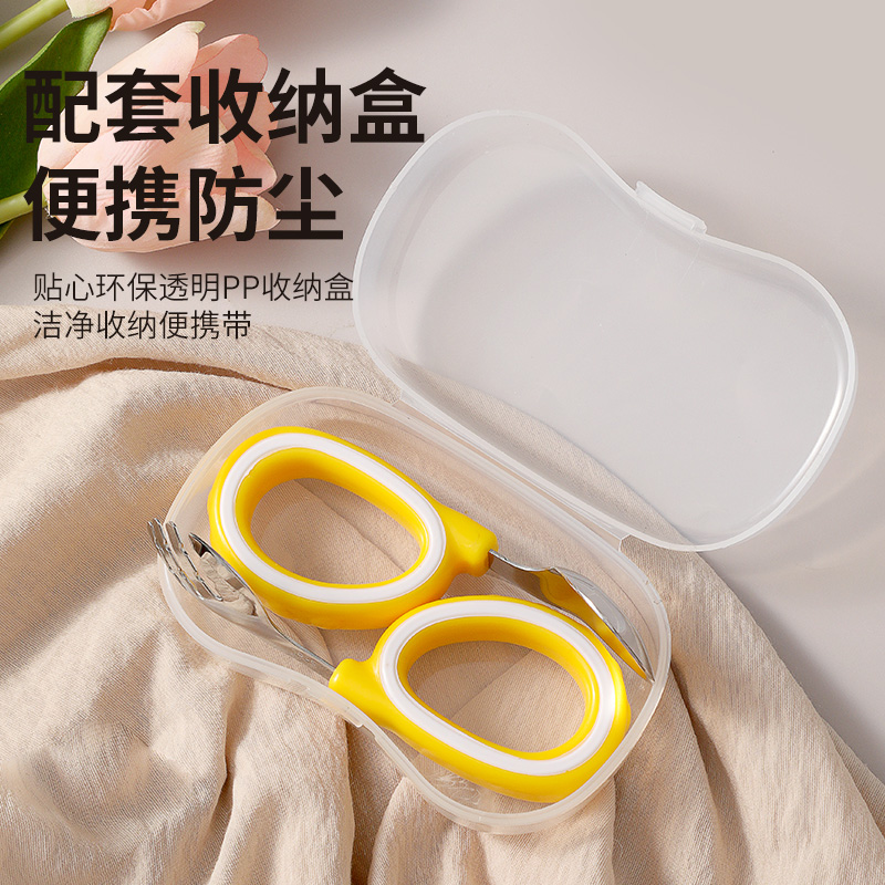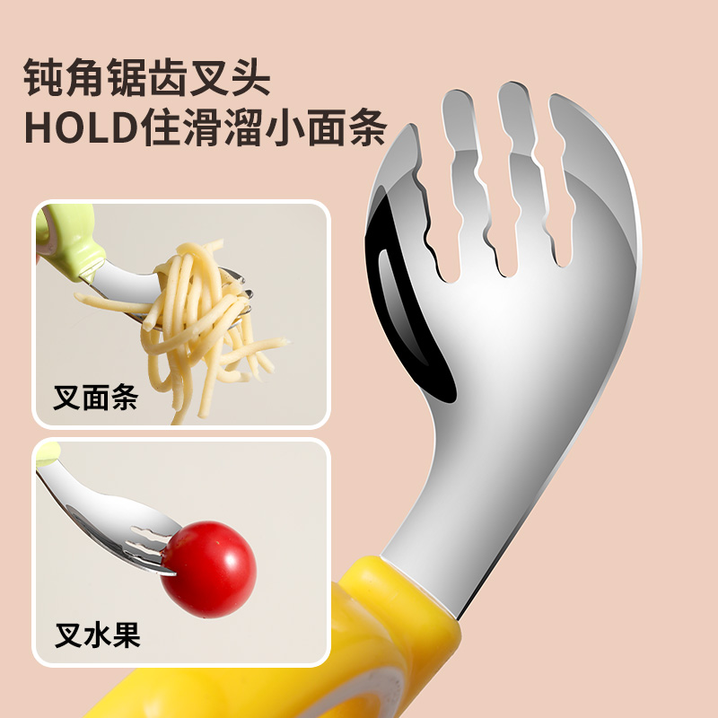 316L不锈钢宝宝训练叉勺套装婴儿童专用防摔餐具学吃饭勺子水果