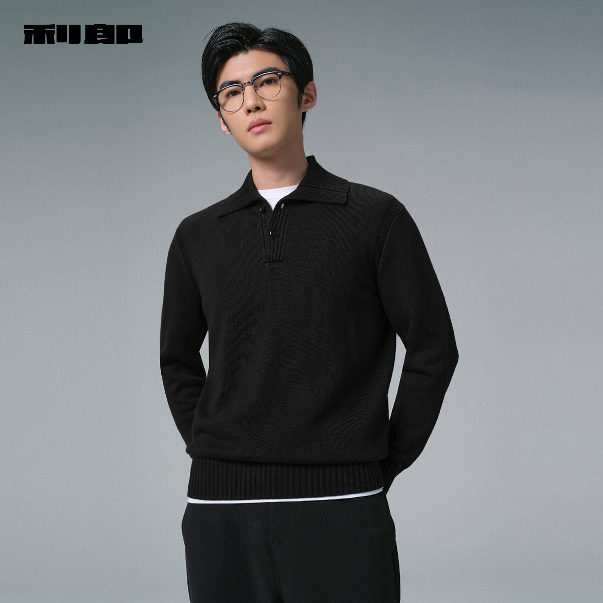 【含绵羊毛】利郎官方毛衣男士2025冬季休闲男装翻领微弹纯色毛衫