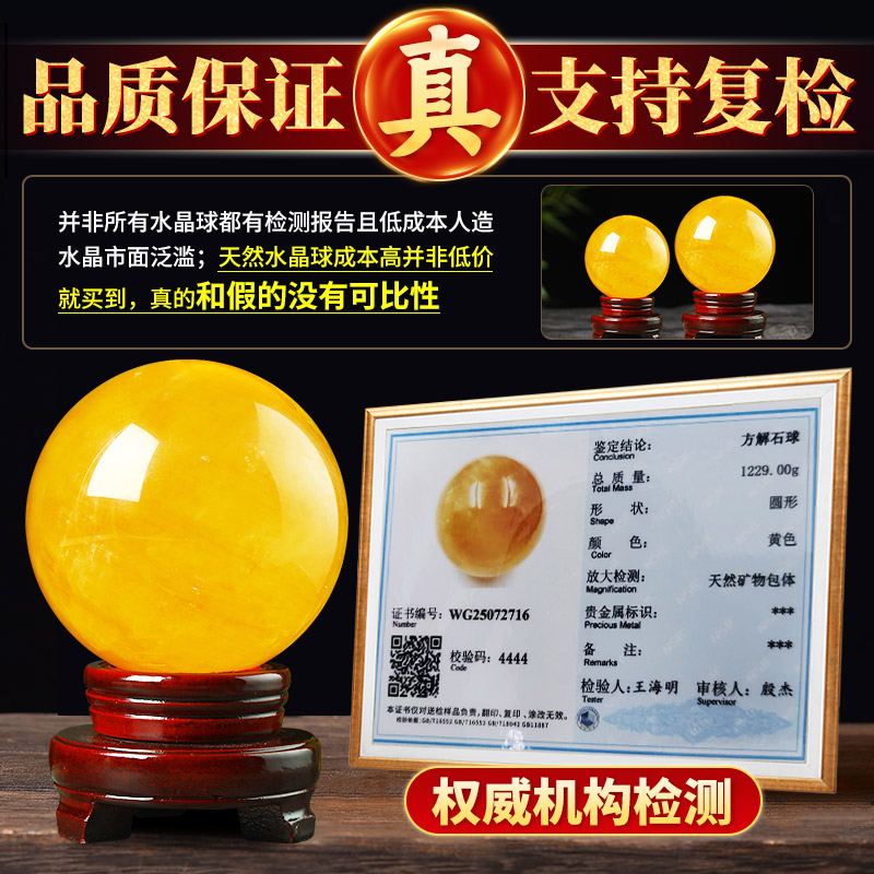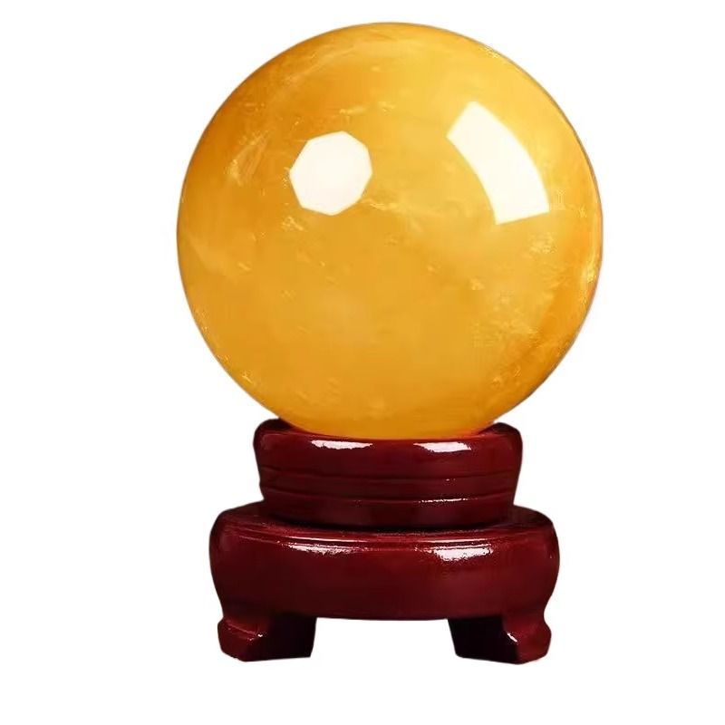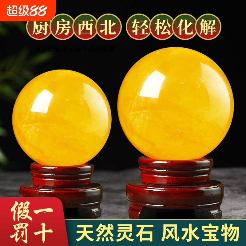 天然黄色仿水晶球原矿厨房客厅办公室招财风水转运球摆件方解石