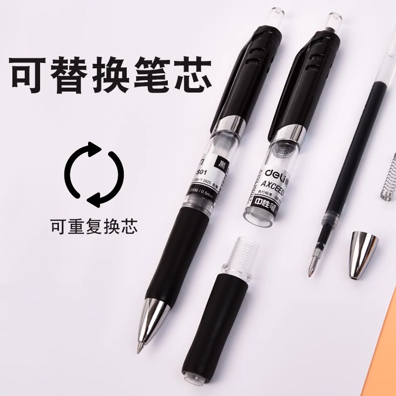 得力中性笔按动笔黑笔臻顺滑红笔签字笔子弹头0.5水笔文具刷题笔