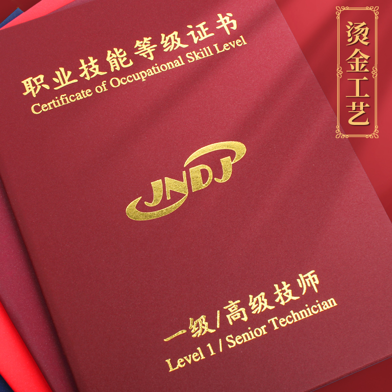 新款通用JNDJ职业技能等级证书套厨师技师证结业a4证件保护套烫金人社部电工证书外套培训合格证内芯内页订制