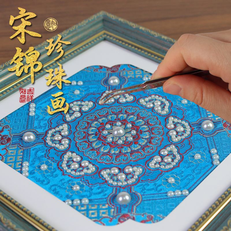 非遗宋锦珍珠画手工粘贴diy材料包中国古风相框中秋节教师节沙龙