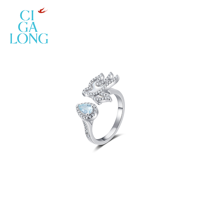 金莎同款CIGALONG龙梓嘉群燕海蓝宝耳钉项链新中式珠宝