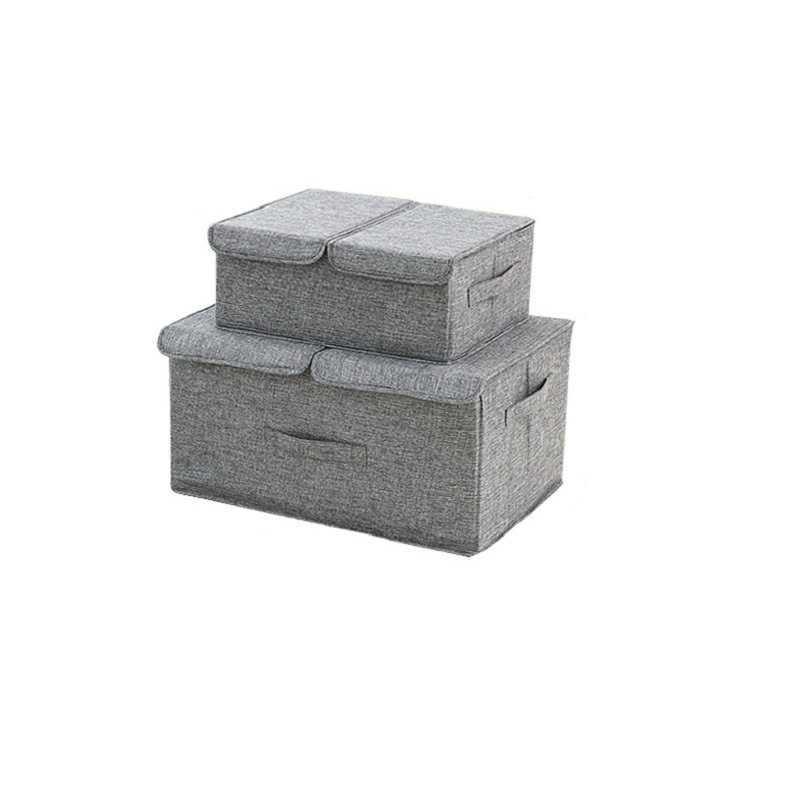 可水洗棉麻双格收纳箱布艺衣服分隔收纳盒整理箱衣柜储物箱亚马逊