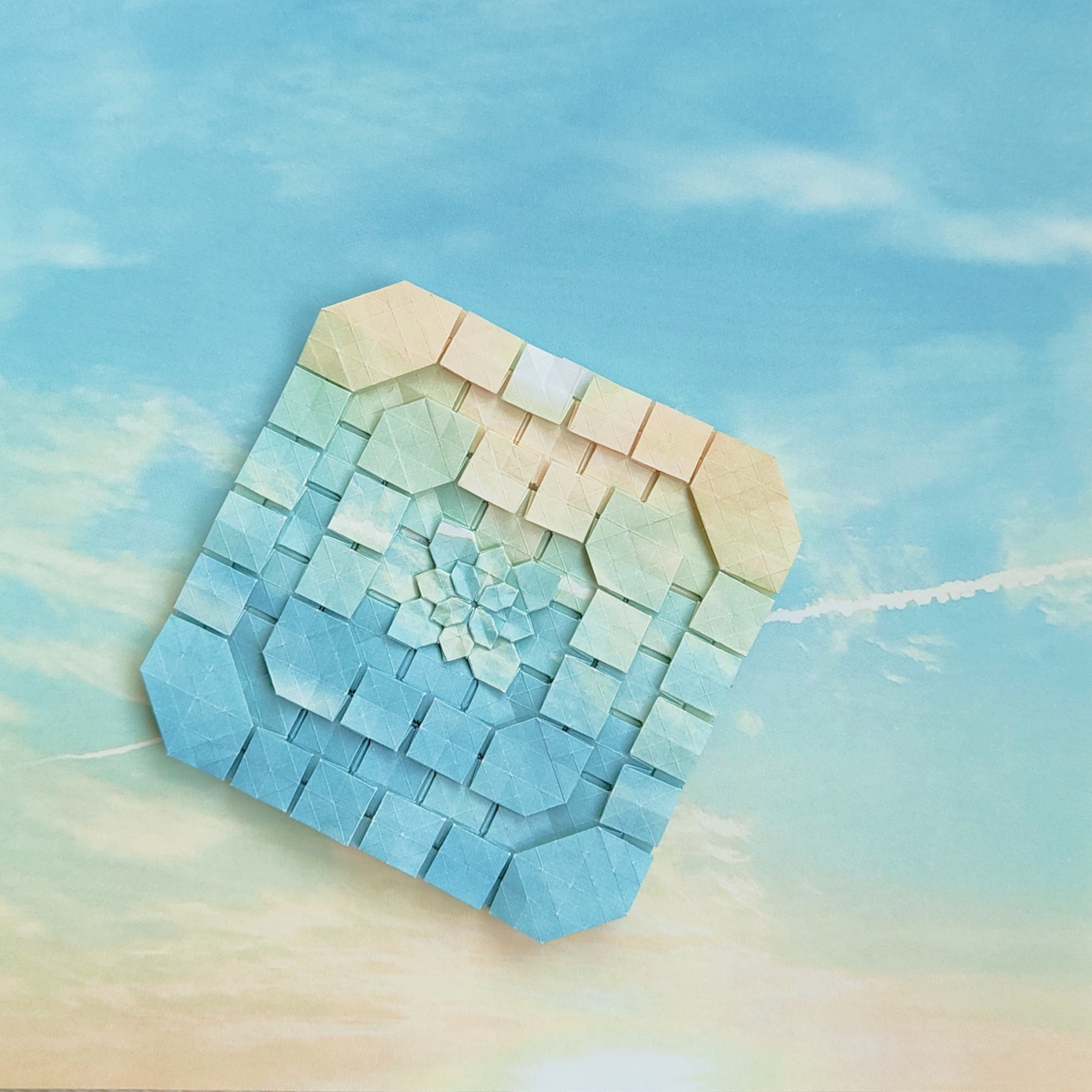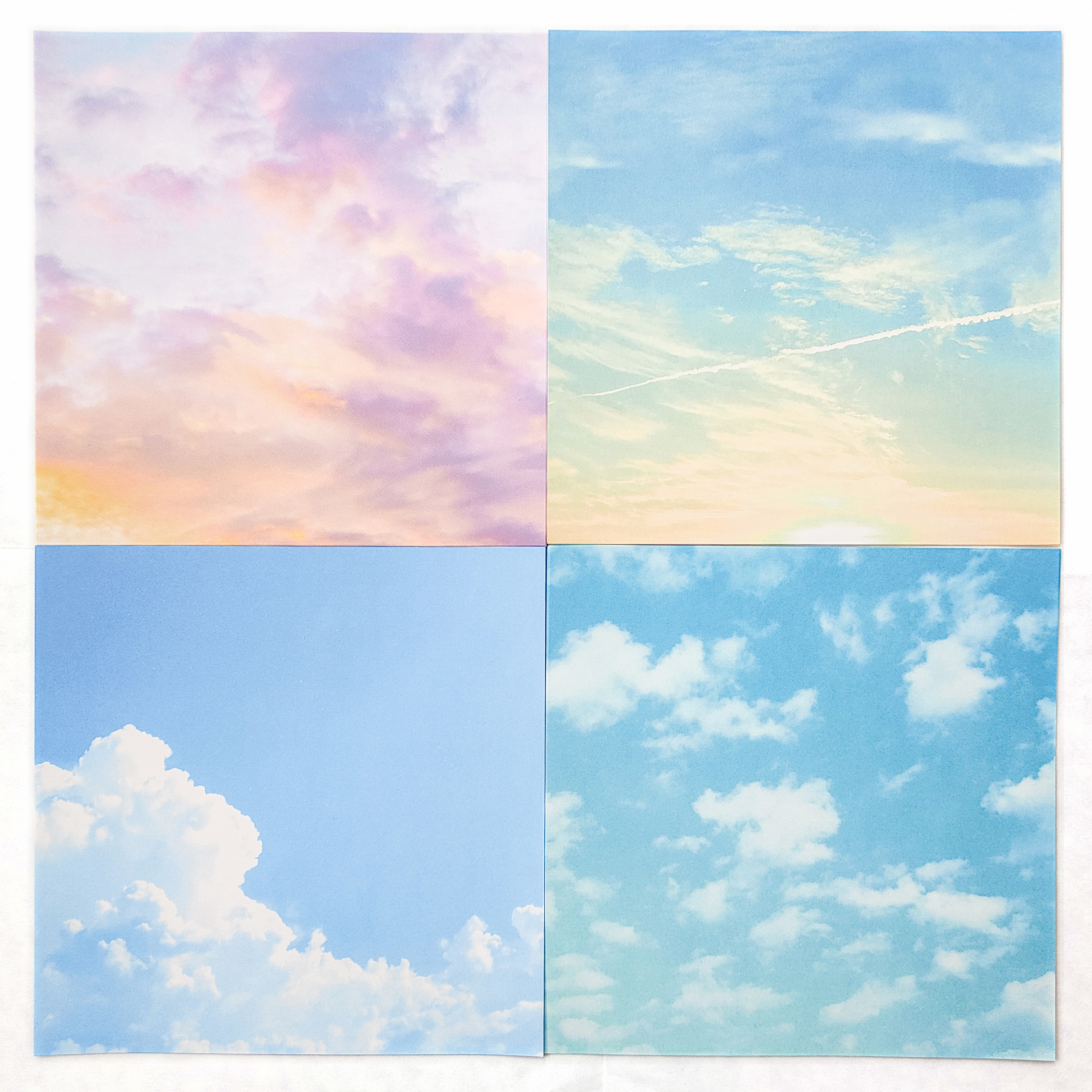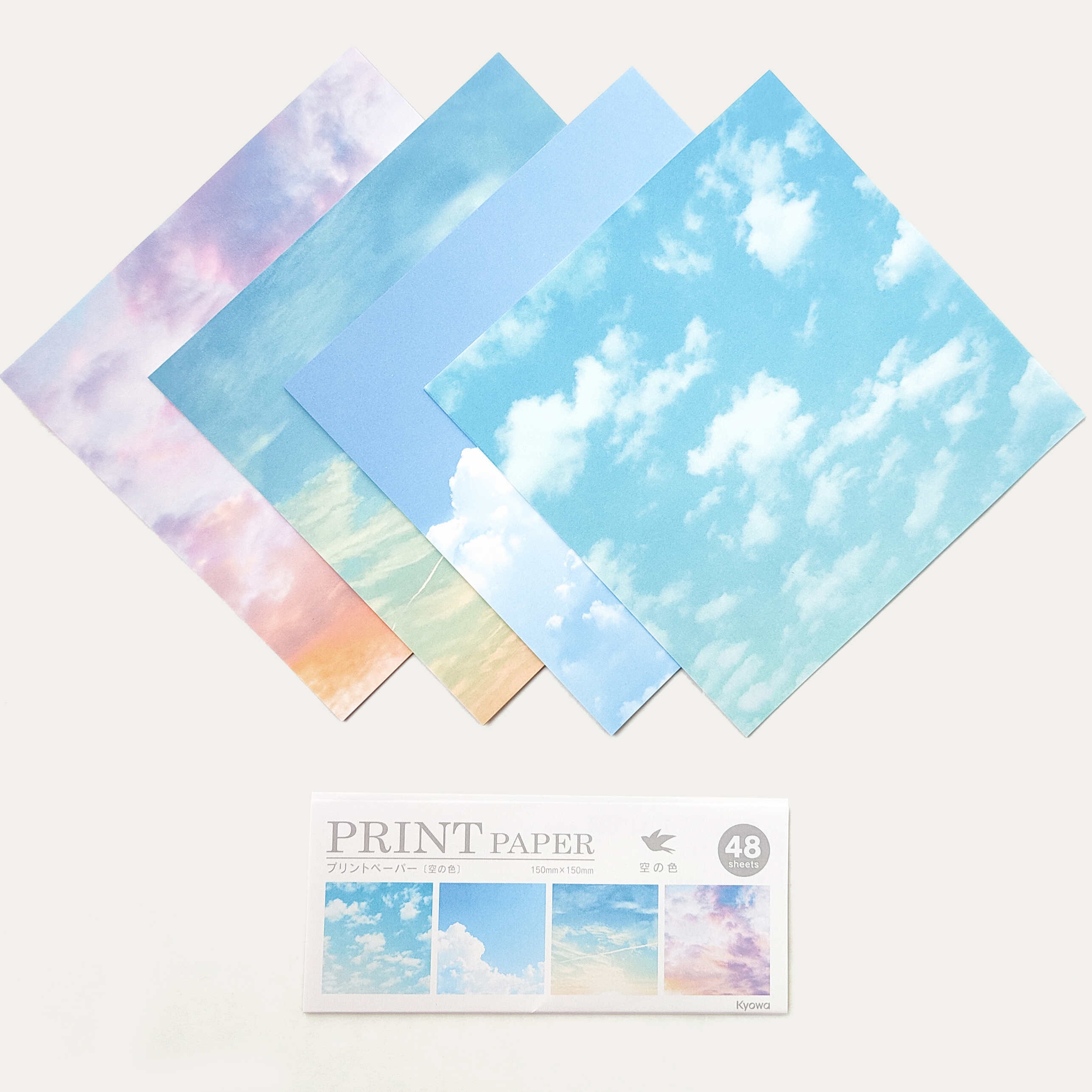 日本kyowa天空色印花薄韧彩纸镶嵌紫阳花折纸协和纸工云朵手工