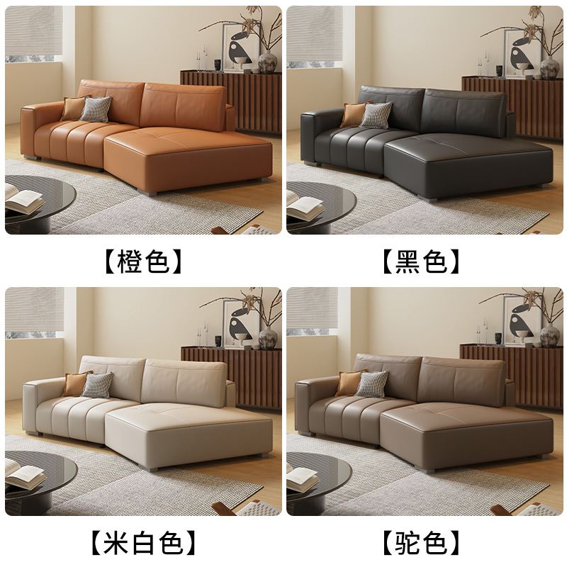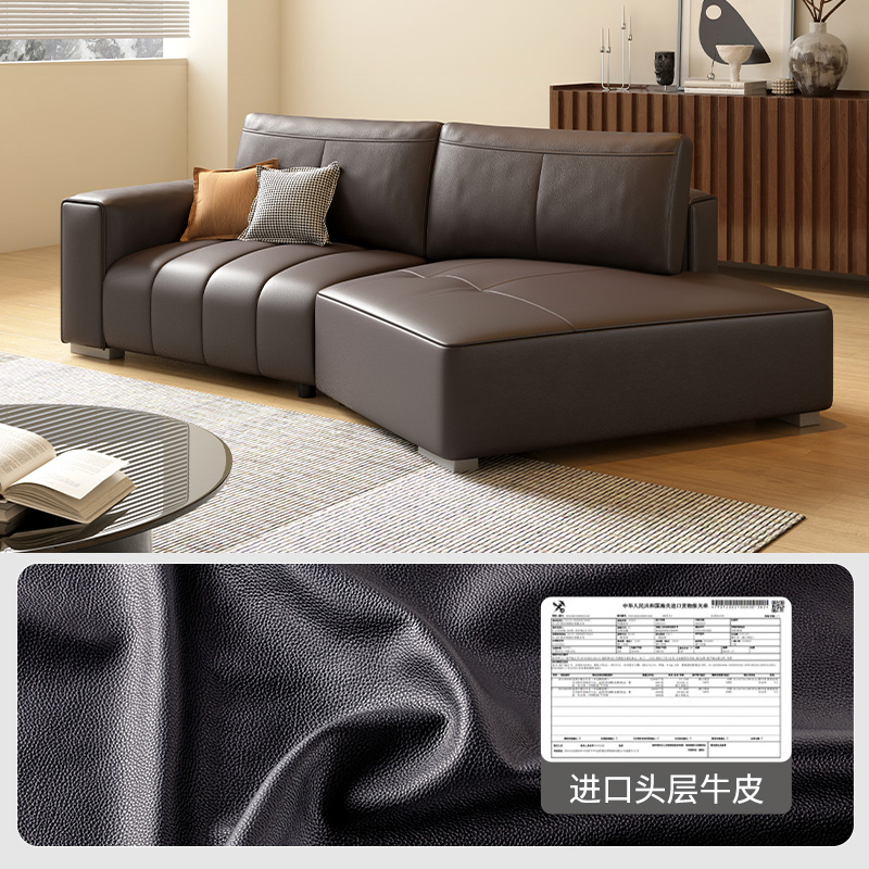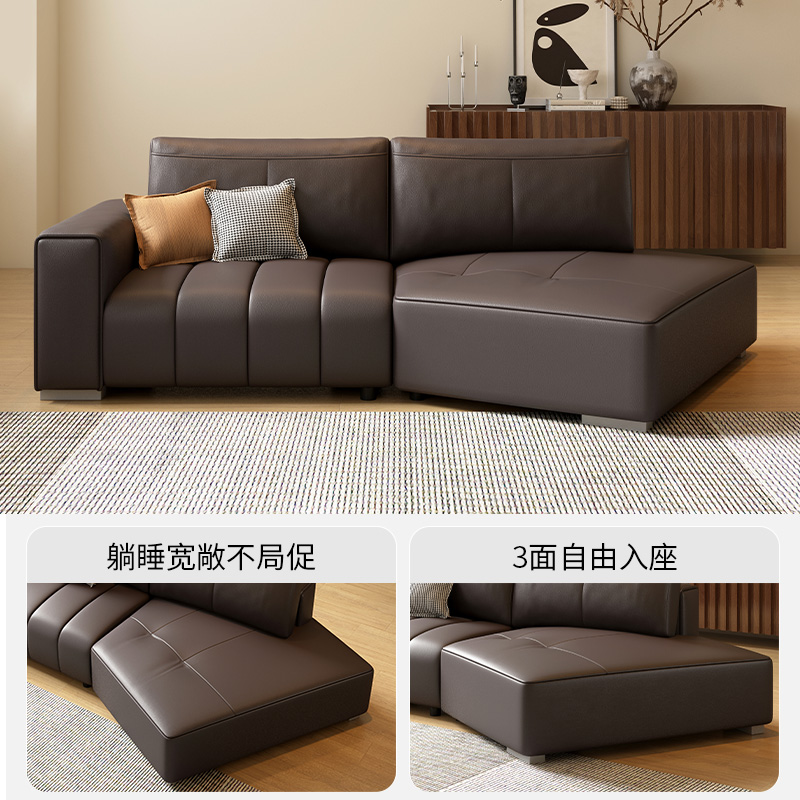 出乎生活松果真皮沙发中古风客厅简约头层牛皮超大坐深直排沙发