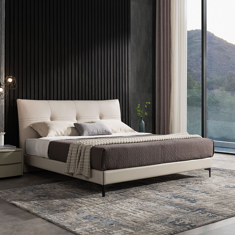 法莎蒂真皮双人床意式现代极简卧室大靠包婚1.8米1.5米悬浮皮艺床
