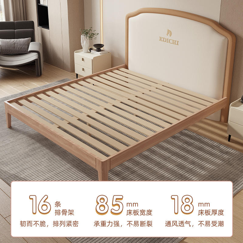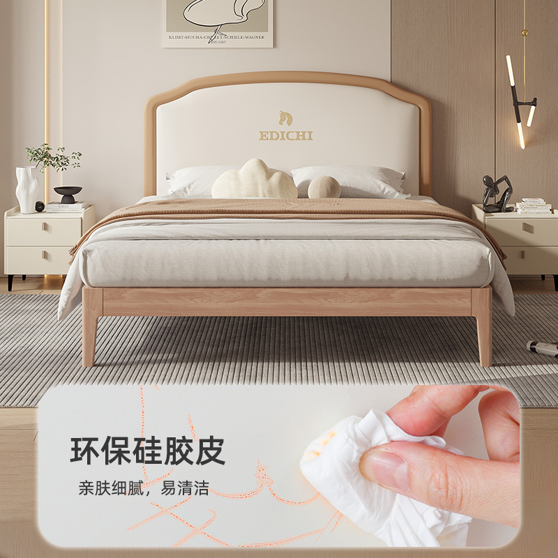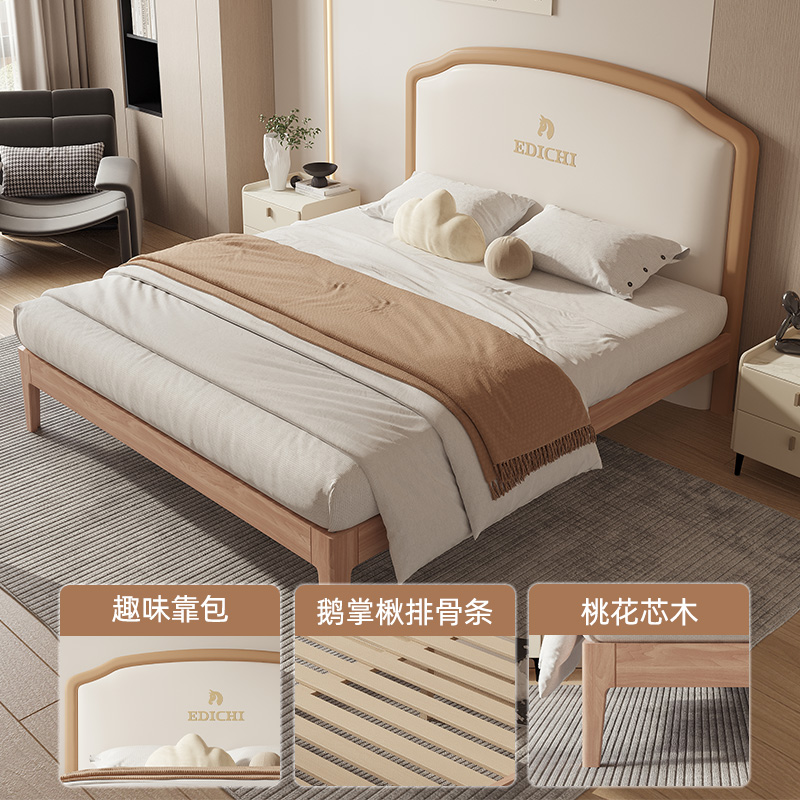 实木床软靠现代简约1.8米1.5米双人床1.2米1.35m单人经济型储物床