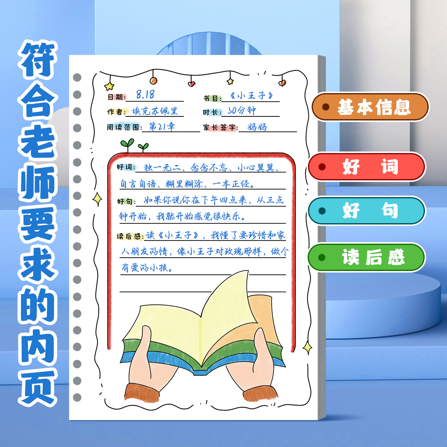 阅读记录卡记录本好词好句摘抄本小学生读书笔记本日积月累摘记本三四年级读后感课外阅读一二年级语文日记本