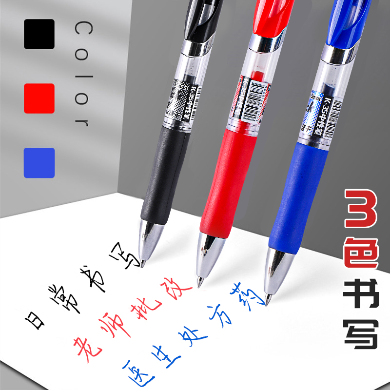 晨光中性笔按动黑笔0.5红色蓝色签字笔k35按动笔子弹头碳素水笔学生刷题笔教师办公文具用品医用墨蓝处方笔