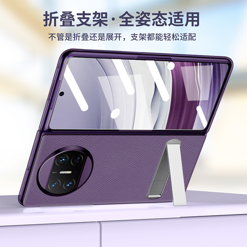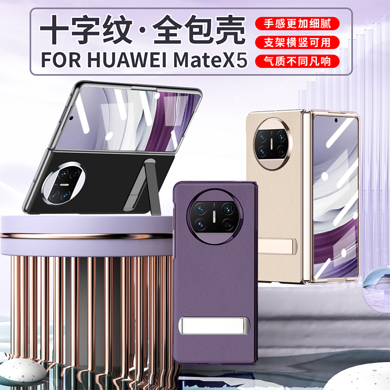 适用于 华为MateX5手机壳电镀边十字纹超薄磨砂mate x5典藏版一体隐藏支架透明边框时尚个性潮