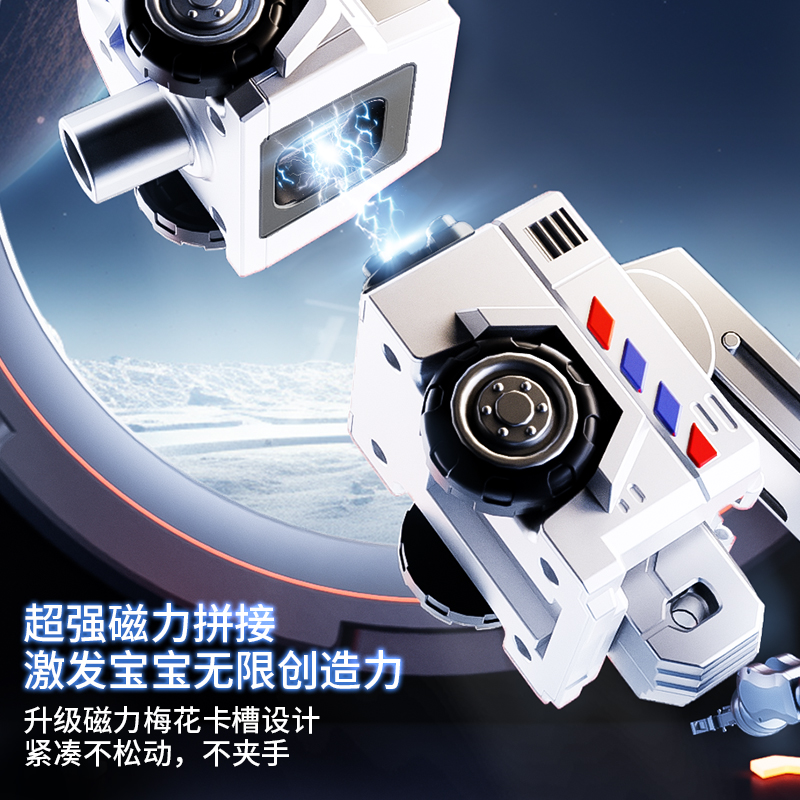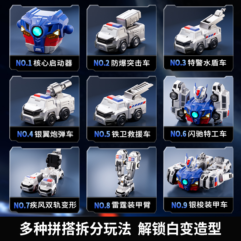 儿童百变磁吸机器人拼装接警察车玩具小汽车变形益智男孩生日礼物