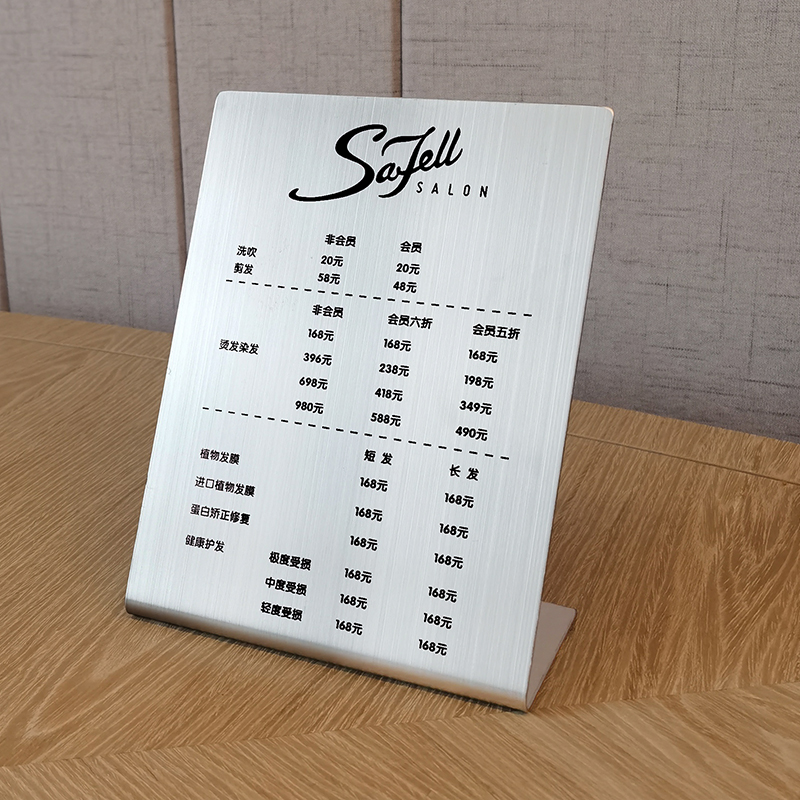 定制不锈钢价格表美容采耳养生菜单牌摆台制作挂牌美发店价目表