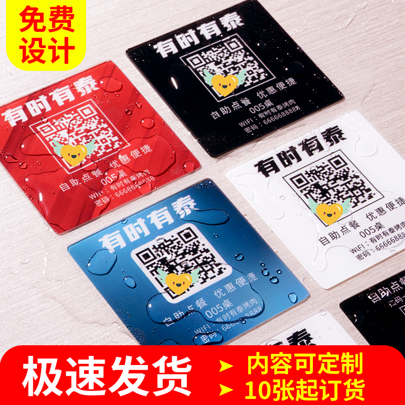 扫码点餐牌定制亚克力二维码制作付款码桌贴饭店餐饮店桌面台号牌手机扫一扫下单点菜牌子防水餐桌号贴