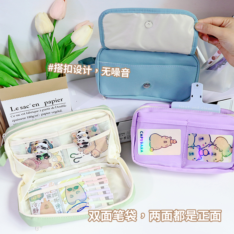 多功能翻盖笔袋简约高颜值ins风初中女生2024新款文具盒大容量文艺透明痛包笔袋女孩小学生铅笔袋小众不撞款