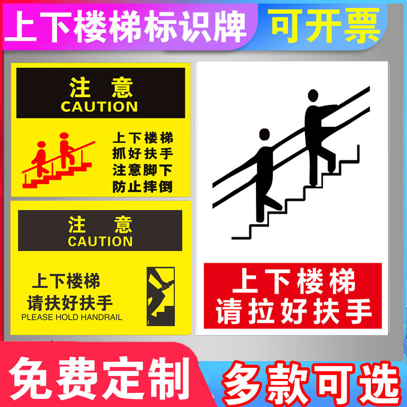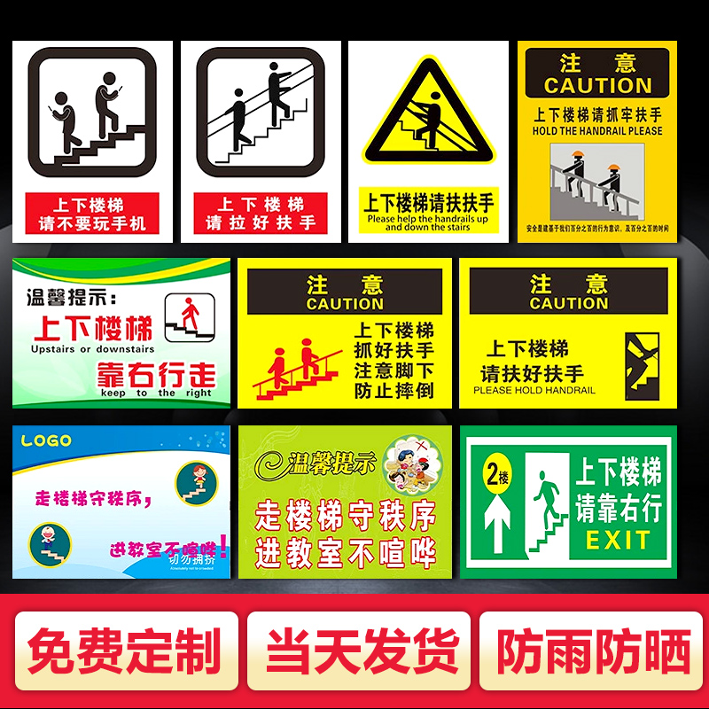 上下楼梯注意安全提示贴抓好扶手防止摔倒标示牌墙贴小心台阶当心跌倒滑倒提醒警示牌标识牌贴纸标志牌提示牌