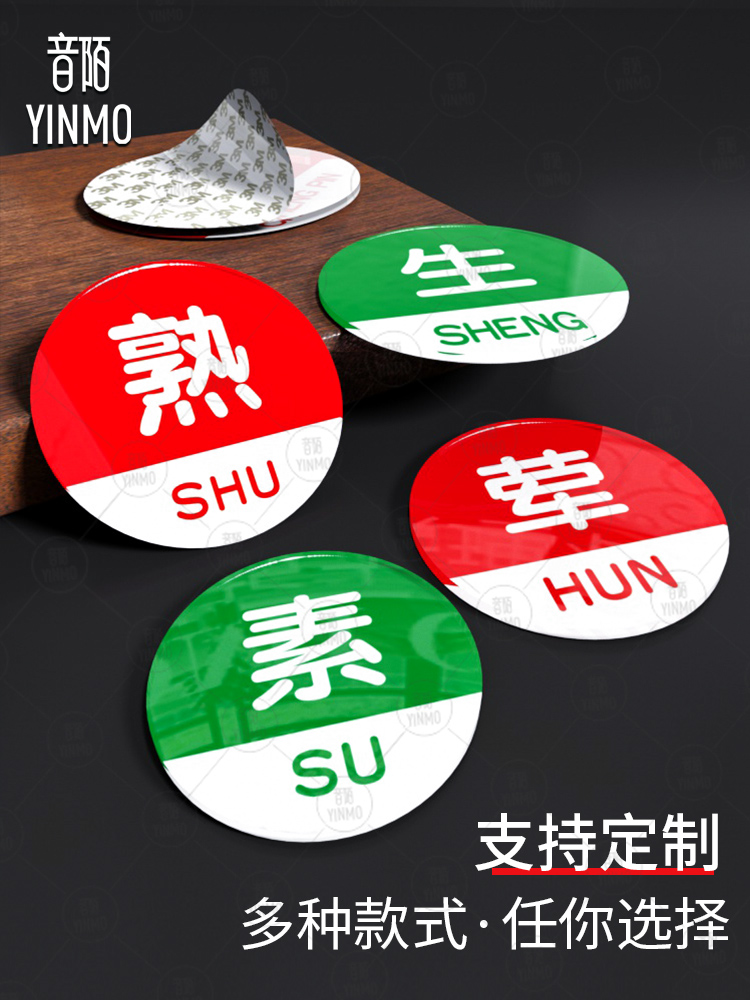 亚克力生熟标识牌厨房荤素提示牌荤素标示4d管理饭店餐厅冷热分类