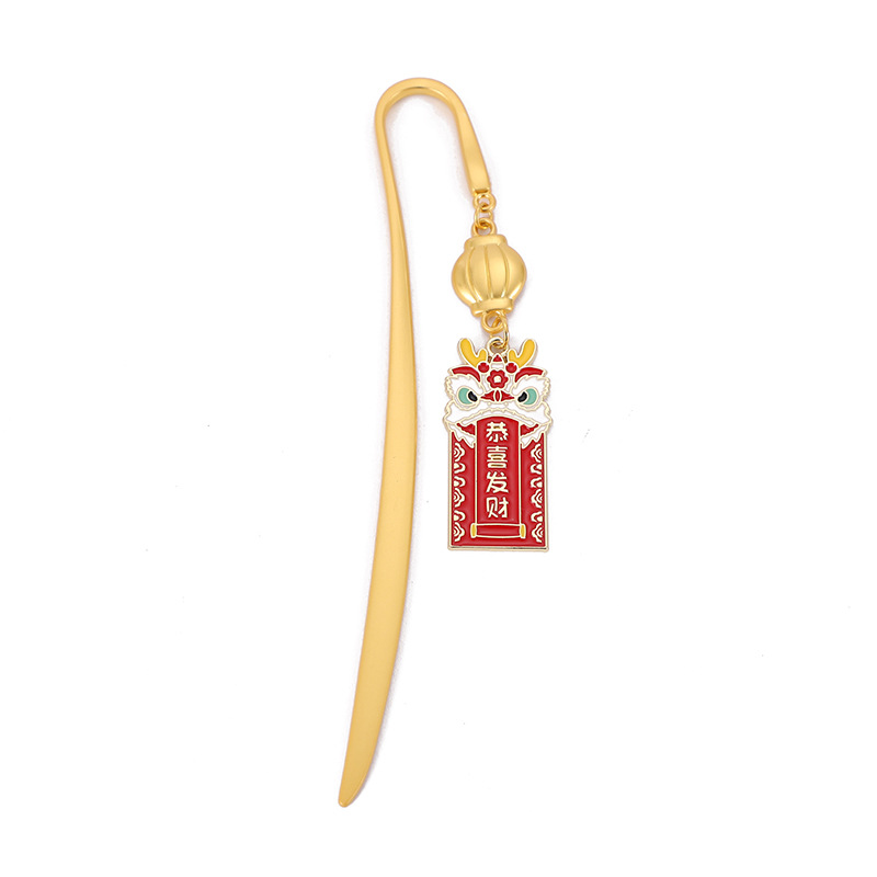 卡通国潮醒狮书签平安喜乐福字柳叶刀书签学生小礼品文创用品批发