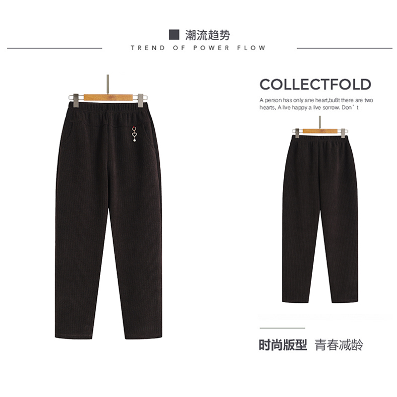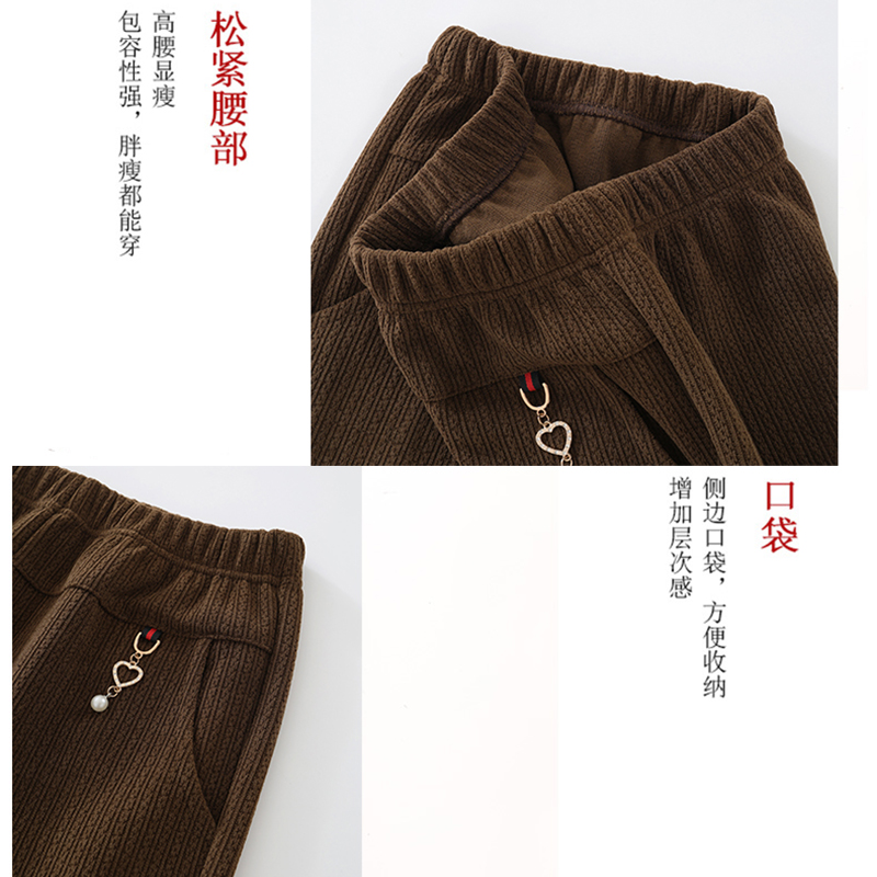 妈妈条绒裤子秋季宽松大码休闲灯芯绒裤中老年人女裤加绒保暖棉裤