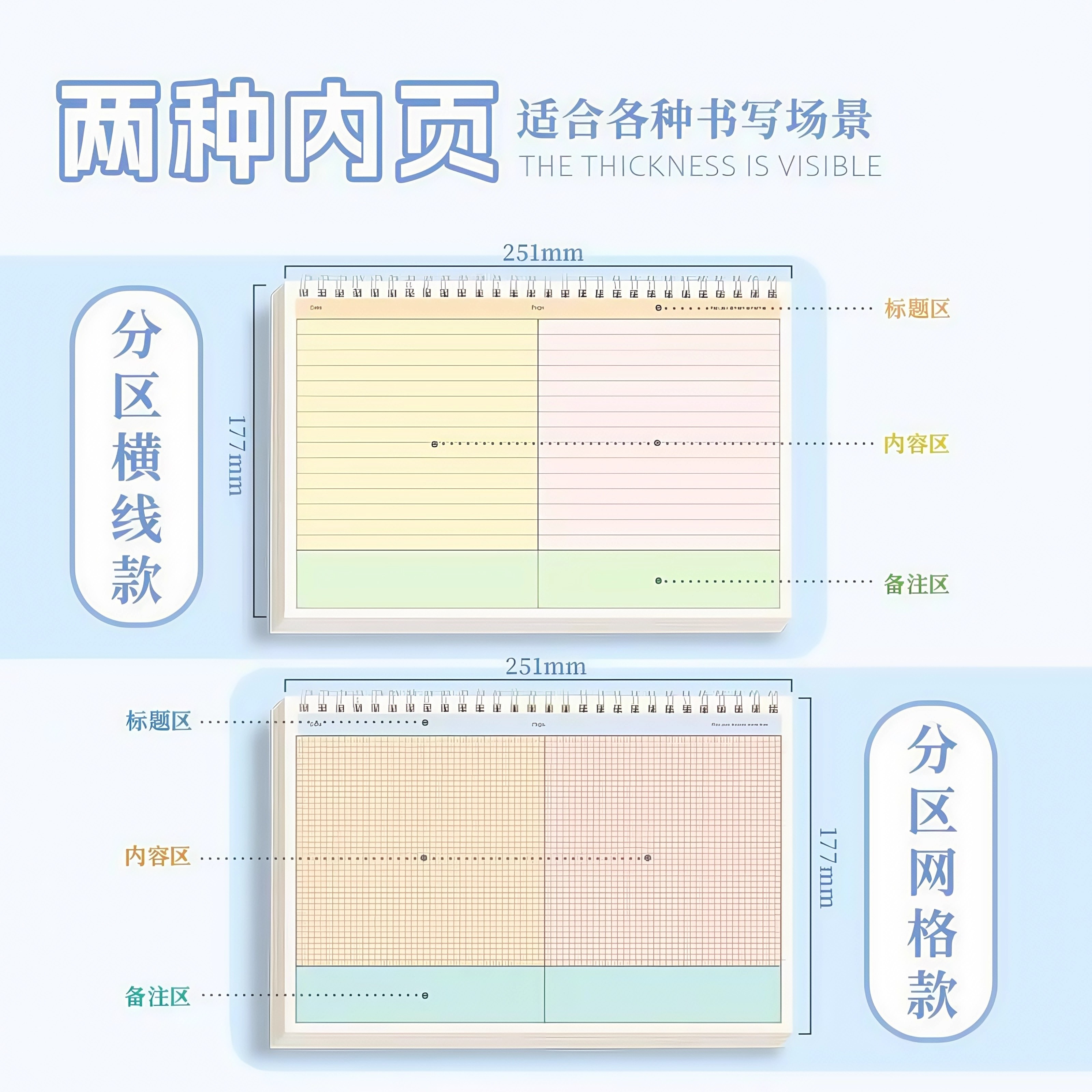 横版上翻线圈本B5加厚简约网格横线笔记本本子大学生记事本分区自律打卡计划本初中生高中生不硌手360度旋转