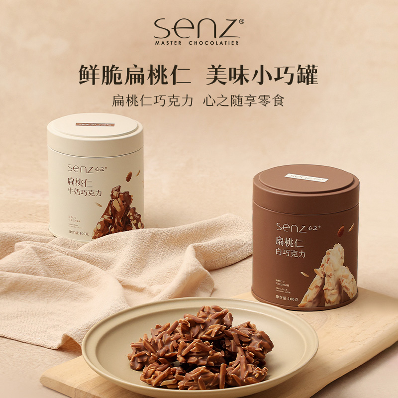 senz心之小巧罐扁桃仁坚果夹心巧克力含纯可可脂牛奶白巧休闲零食