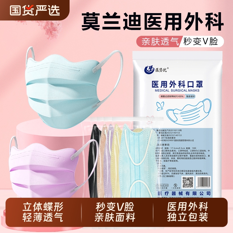 医医用外科口罩蝶形一次性医疗正品彩色夏季薄款立体女高颜值防护