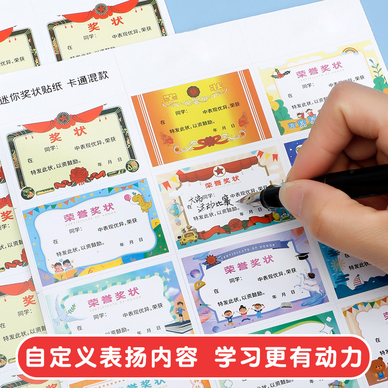 小学生奖励贴纸迷你小奖状鼓励孩子学习的贴纸班级儿童幼儿园一年级小奖贴优秀荣誉表扬信创意可手写小奖状纸