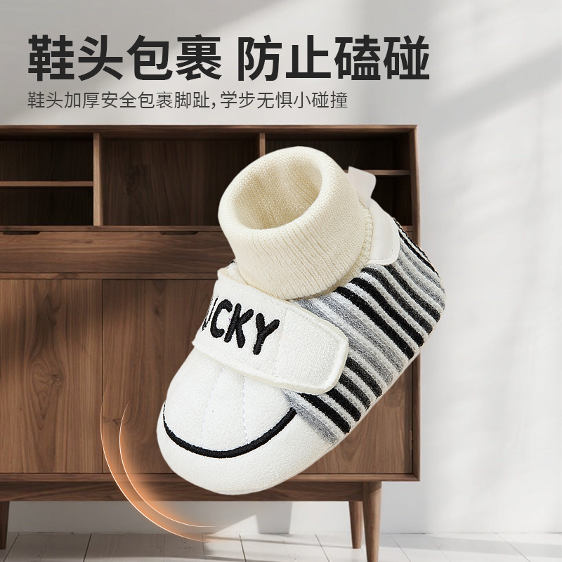 婧麒婴儿鞋6到12个月新生儿一体不掉跟高帮步前鞋秋冬款加绒鞋子