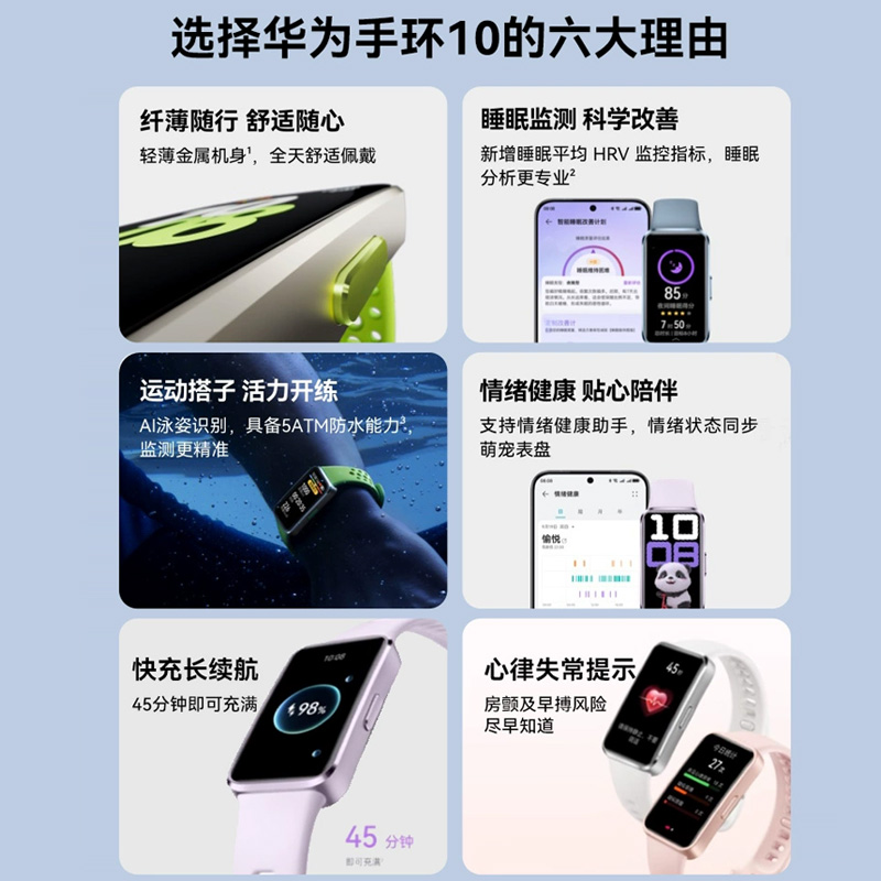 华为手环10手环情绪健康助手男女款防水智能运动蓝牙连接学生新款轻薄大屏长续航华为手环10