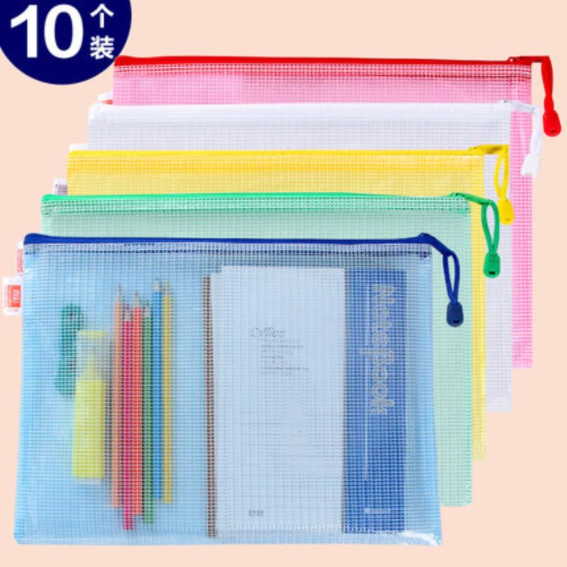 网格文件袋加厚透明网格拉链袋A4试卷收纳袋学生用考试文具袋防水笔袋办公用品批发公文档案袋资料袋包邮