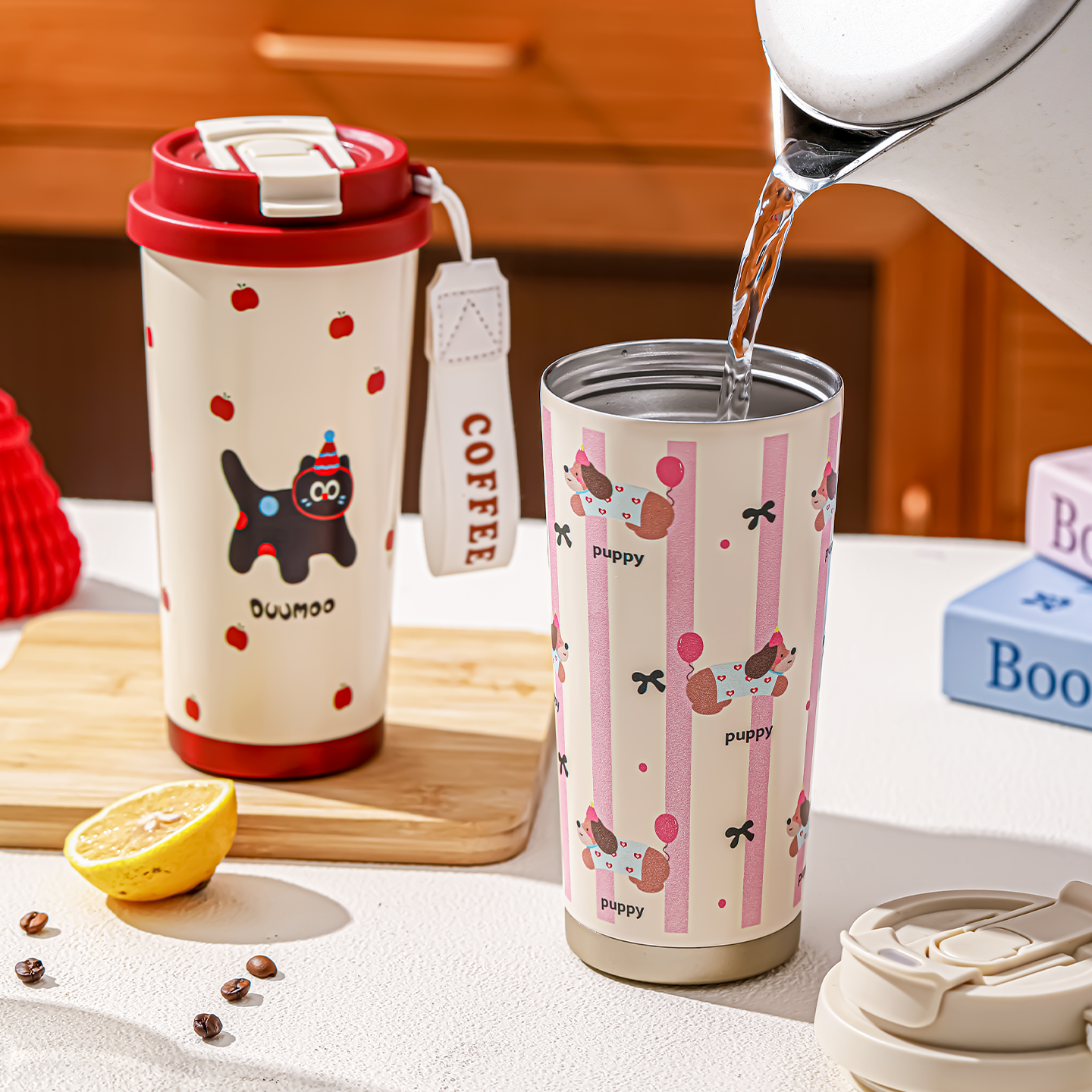 言仓线条小狗保温杯水杯高颜值实用便携儿童女生情侣生日礼物