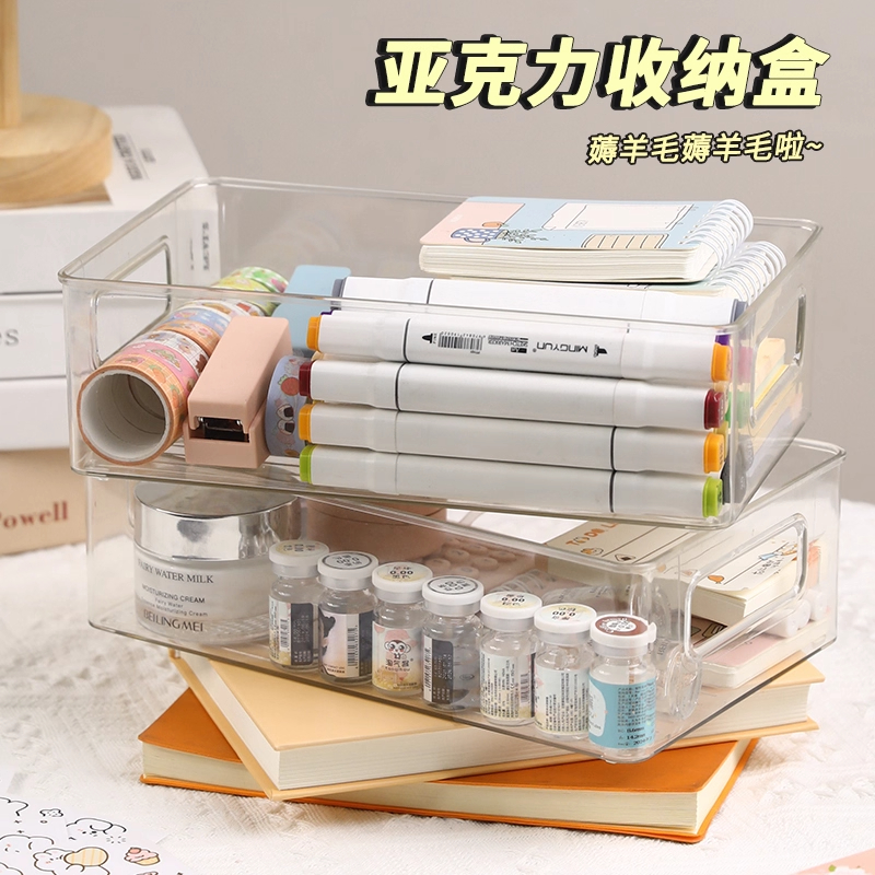桌面收纳盒亚克力零食透明筐化妆护肤品面膜宿舍杂物长方形置物架