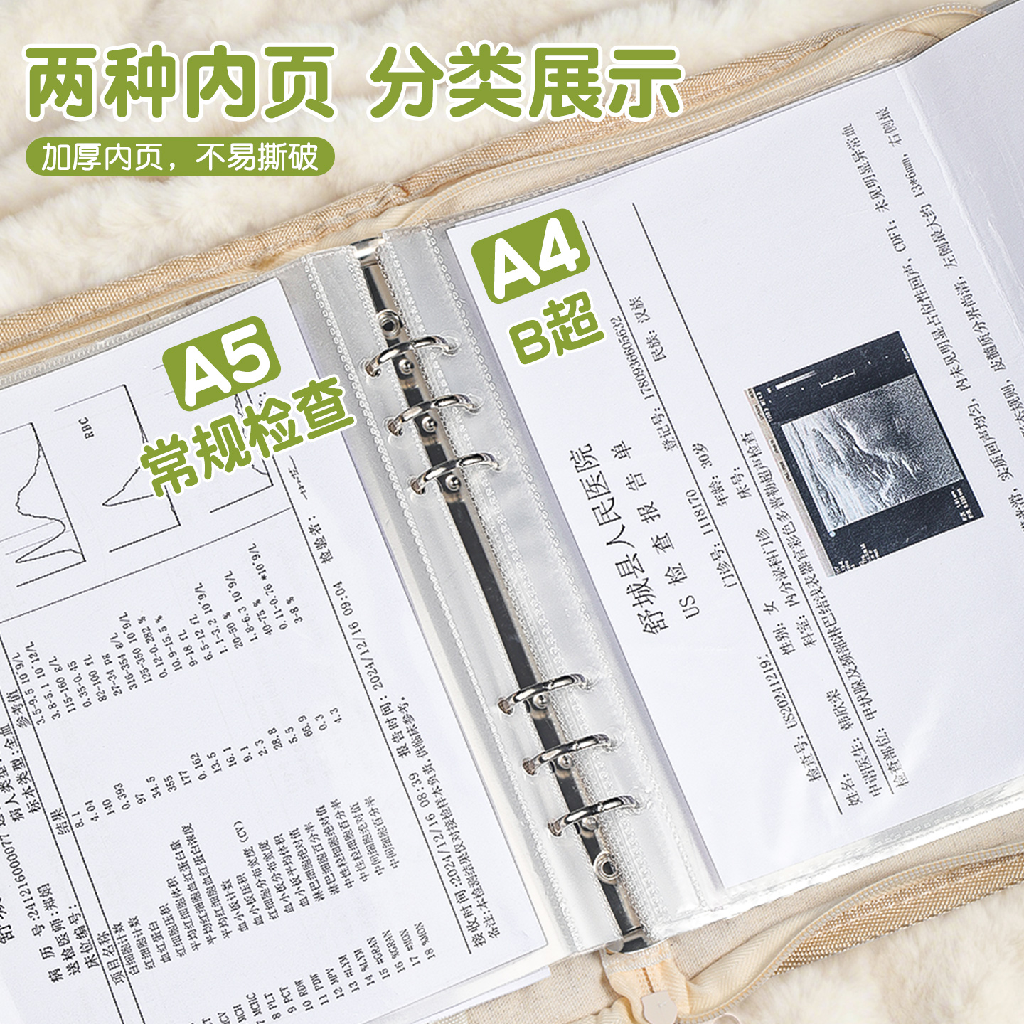 产检孕检收纳册带拉链包产检报告单收纳册马宝宝孕期档案册活页文件夹收纳袋产检手册孕妇初期用品资料记录册