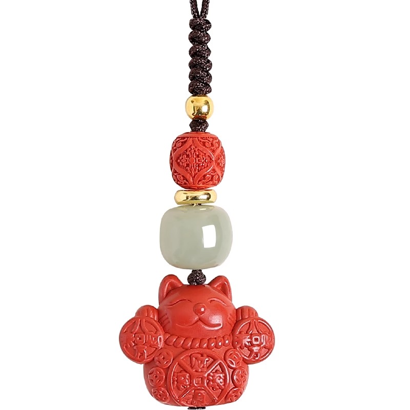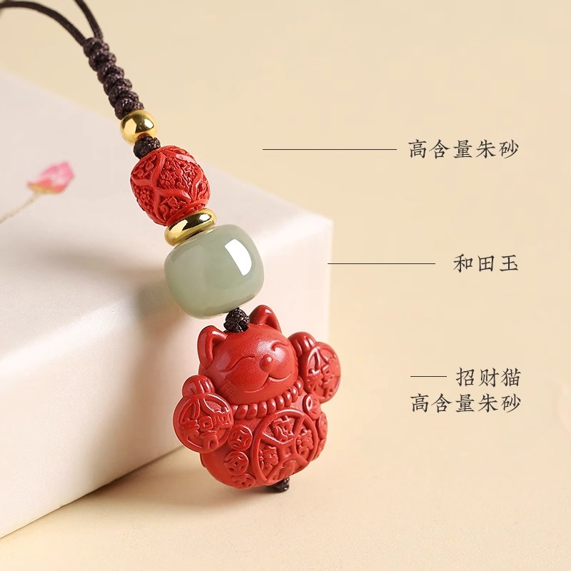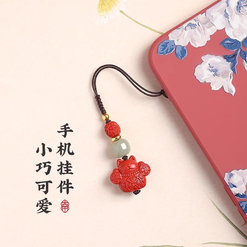 招财猫手机挂件精致女男和田玉情侣U盘包挂绳手机链吊坠粉水晶