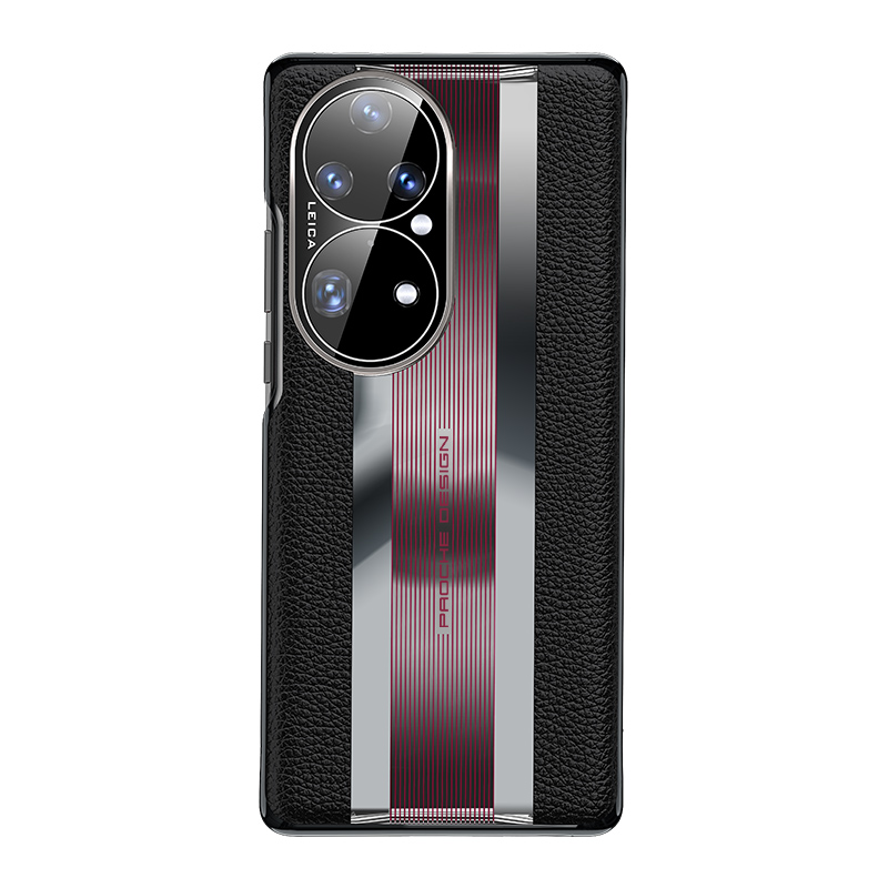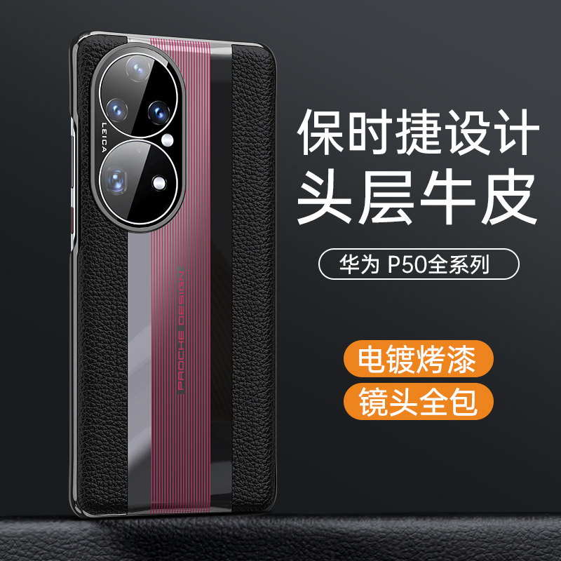适用于 华为p50手机壳真牛皮秒变保时捷纹p50pro护镜头精孔全包p40pro+超薄电镀金边p40 pro保护套高档商务潮