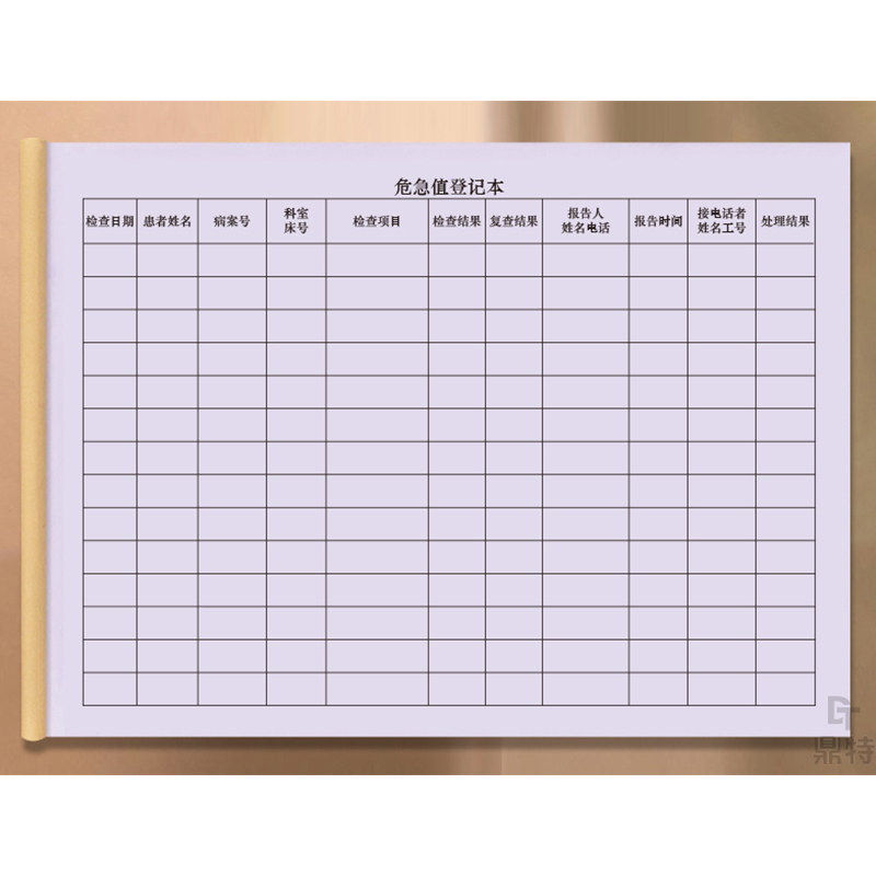 危急值登记本危急值登记本检验科医院门诊就诊患者检查复查情况记录表工作日志紧急情况记录本皮试救治手术登