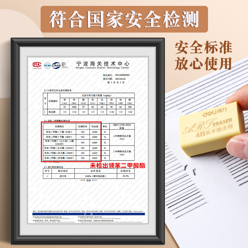 【4B更柔软 不伤纸】得力小学生橡皮擦素描无屑像笔擦专用超干净不留痕儿童擦得干净安全无毒幼儿园美术生