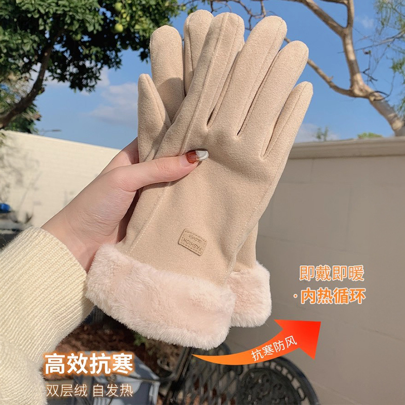 新款冬季保暖手套加绒加厚防寒触屏骑行开车户外运动德绒棉手套