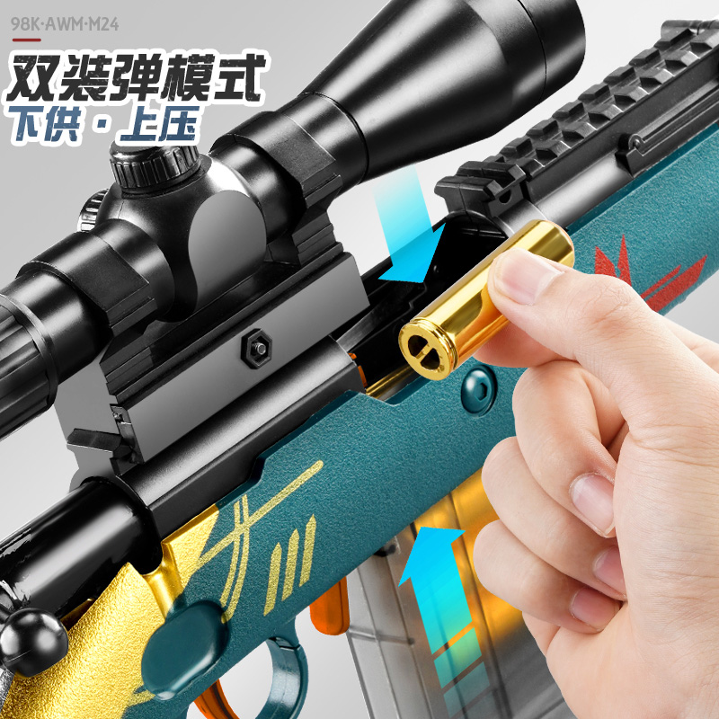 儿童抛壳狙击枪软弹枪玩具AWM仿真抢模型步枪新款男孩98K吃鸡枪