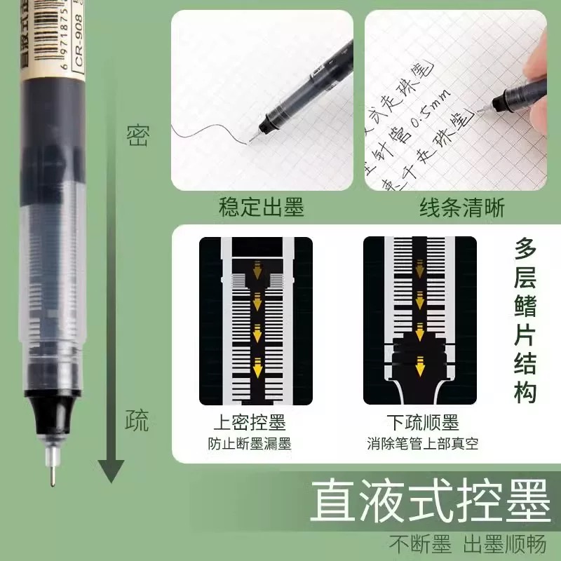 巨能写直液式走珠笔速干黑色中性笔大容量针管型签字笔圆珠笔0.5m