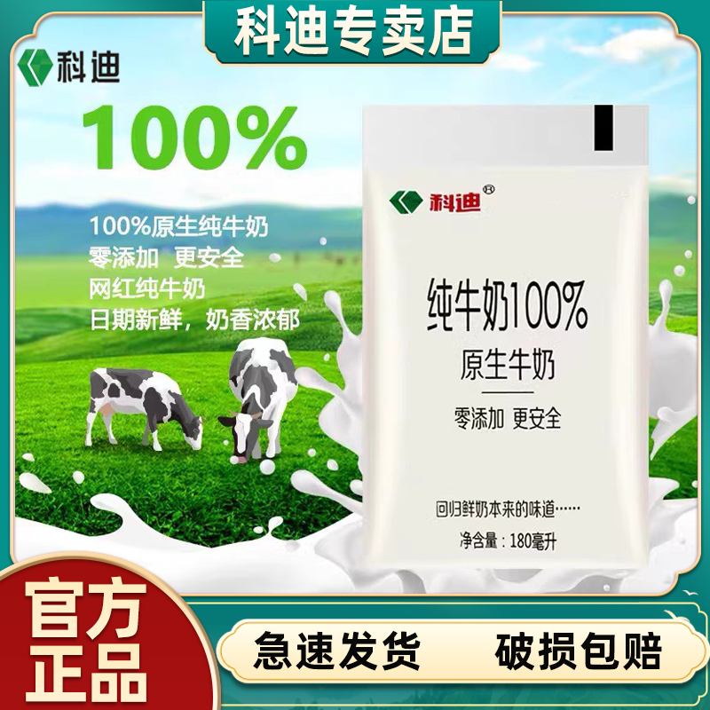 科迪纯牛奶原生牛奶透明袋180毫升/160克袋装网红小白袋全脂常温