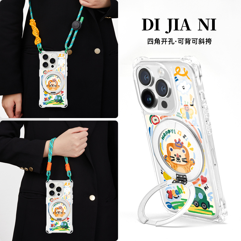 彩绘涂鸦适用苹果17promax手机壳新款磁吸透明iphone16pro挂绳女可爱带支架15斜挎可背14高级感支点壳13手腕