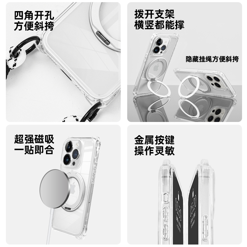 2025支点壳适用iPhone17promax手机壳16p苹果17新款15Plus网红爆款13Pm磁吸带支架12保护14Pro透明Air防摔套