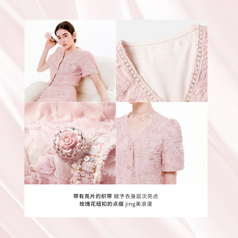 可可尼COCOON25年夏季粉色小香风富家千金穿搭薄外套女